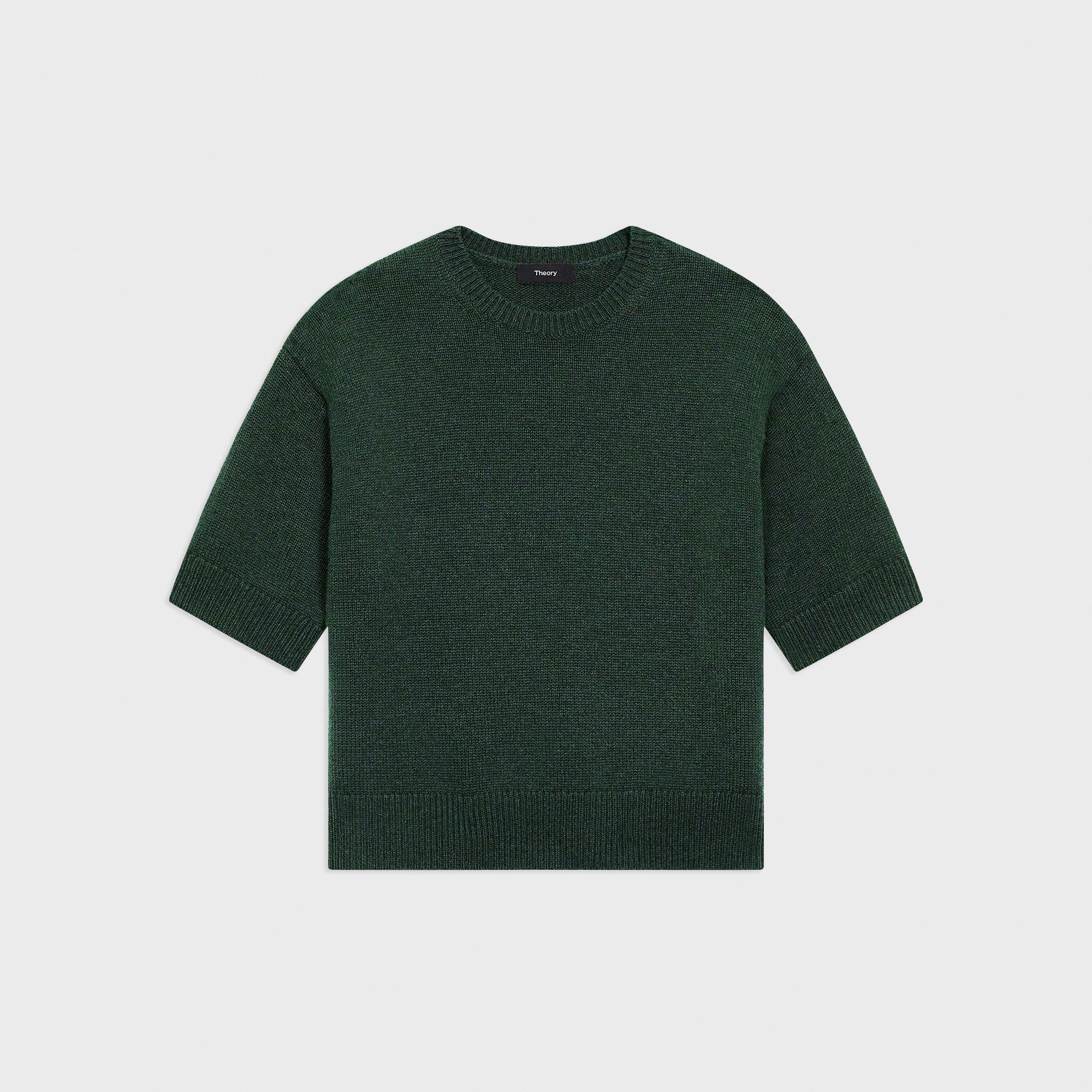 This oversized tee is crafted in an airy, single-ply cashmere that feels soft against the skin. Finished with rib-knit trim, this cropped silhouette features a classic crew neckline and dropped shoulders. An elevated essential for cooler days ahead.